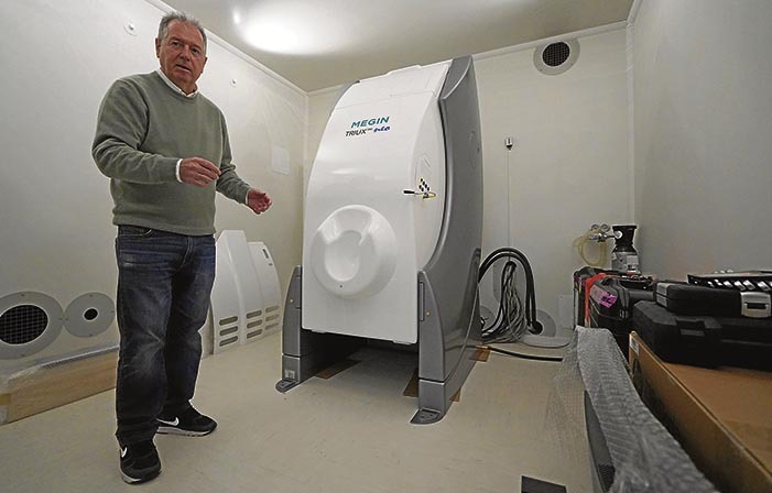 «Dibertigarria de gure laborategia, ezta?», diosku irribarretsu BCBLko zuzendari zientifikoak, hurrengo instalazioetara bidean goazela. MEG (Magnetoentzefalografia) du grazia eta makinatzar bat ikusi dugu aurrez aurre, sekula ikusi gabea. Magnetoentzefalografoa da; parte-hartzailea zutik eta eserita hartzen du. Kasko handi bat ikusten dugu eta sekulako paretak dauzkan kabina bat. «Estatuan ez dago horrelakorik, oraingoz behintzat ez. 2.200.000 euro balio du, pentsa. Konpainia finlandiar batek asmatu zuen, gero Erresuma Batuko beste batek erosi zuen patentea eta egun AEBen lizentzia dauka. Kabina honen isolamendua ‘brutala’ da, lurraren berezko eremu magnetikotik salbu behar du, grabatzen ditugun seinaleak oso garbiak izan behar direlako. Eta berriz diotsut, inbaditzaileak diren teknikak erabiltzeke, estimulazio elektriko edo antzekorik gabe, estimulu zehatz bat aurkeztean burmuinari gertatzen zaiona pasiboki erregistratzen dugu».