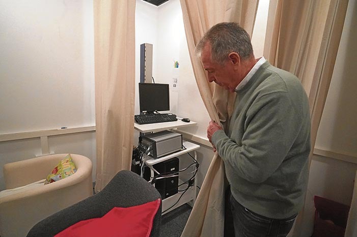 «Prozesu ortografiko eta semantikoetan informazio asko lor daiteke teknika honekin. Begia oso inportantea da. Eta aurrerantzean ikusiko ditugun kabina guztiak distribuzio hauxe bera dute: parte-hartzailea barruan da, ez gaitu entzungo. Guk lo har ez dezala zainduko dugu, estimulu jakin bat aurkeztuko diogu eta bere erantzuna erregistratuko dugu. Hemen dagoen ezer ez da inbaditzailea. Uhinak baditugu, gero ikusiko ditugunak, baina ez guk probokatuak, burmuinak ekoitzi eta guk erregistratuak baizik».