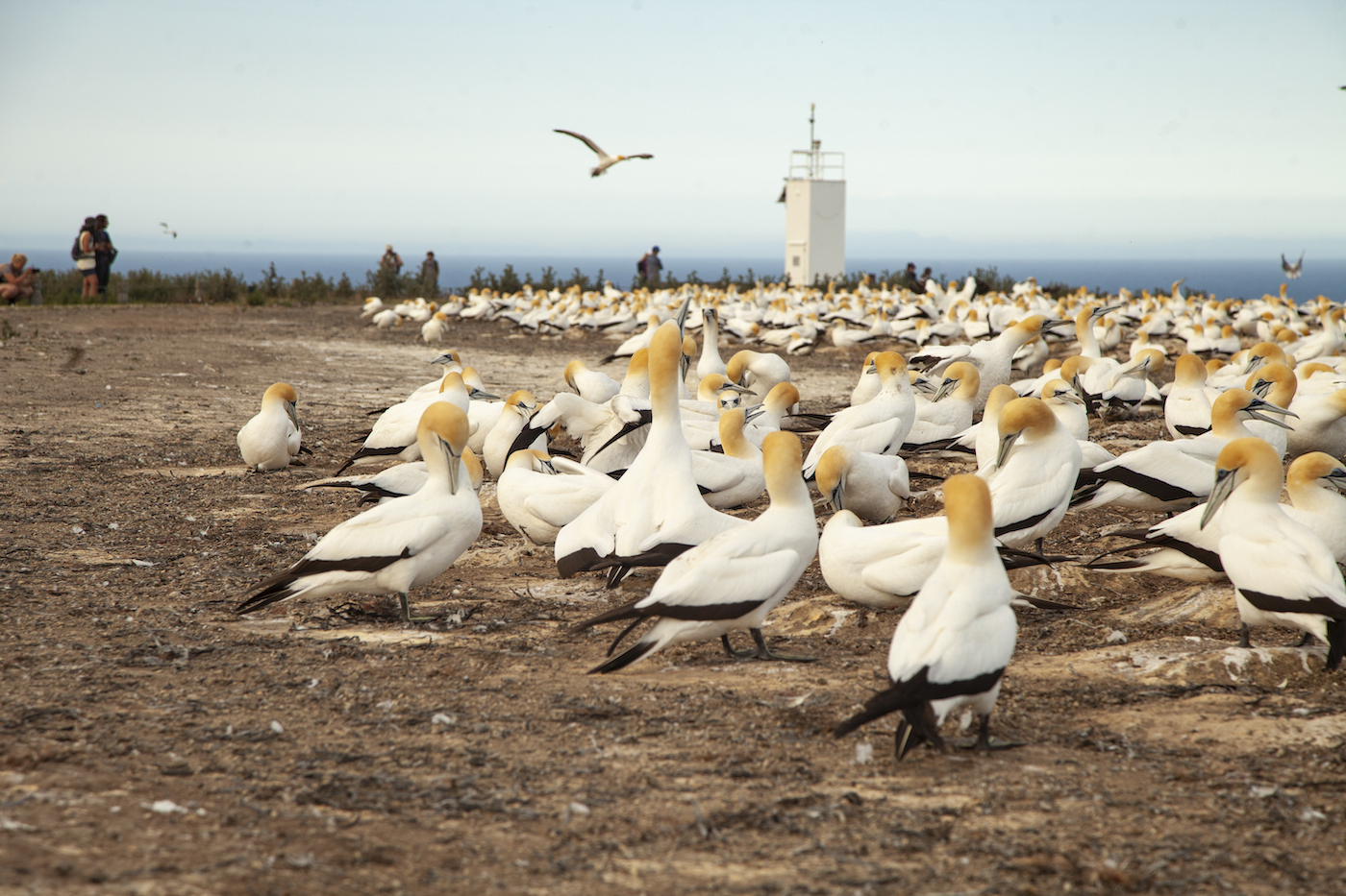 Hain zuzen ere, azken alderdi horretan nabarmentzen da Kidnappers lurmuturra, munduko koloniarik handiena baita, eta lehorretik erraz irits daiteke bertara. Kolonia handiagoak badira, baina horiek guztiak leku bakartietan daude, hala nola uharteetan edo haitzetan. Kidnappersen 25.000 baino gehiagori buruz hitz egiten ari gara: habietan pausatuak, bikote bila, eztei erritualak eginez, seme-alabak ateraz, koloniaren gainetik hegan eginez... Baina hemen bereziena da, benetan harrigarria, zein hurbil ikus daitezkeen, bi metro eskasera. Ukitu ere egin litezke.