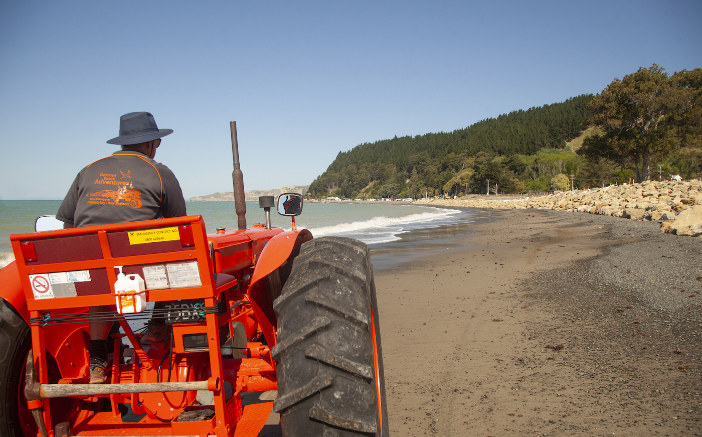 Kidnappers lurmuturrera iristeak 16 km egitea dakar. Horietatik 12 hondartzakoak dira. Esan bezala, hondartza itsasoaren eta itsaslabarren arteko hareazko eta harrizko korridore estu bat da, itsasgoran desagertzen den lur-zerrenda bat. Lurmuturrerako bidea erraza da, luzea baina laua. Oinez zailtasunik gabe ibil daiteke, baina ondo kalkulatu behar dira denborak, itsasgoraren eta itsasbeheraren gorabeherei dagokienez. Traktorean joatea da aukera. Plaza aldez aurretik erreserbatu eta Clifton hondartzatik ateratzen da, mareak arazorik sor ez dezan kalkulatutako orduetan. Esperientzia bitxia da. Erritmoa da ibilgailuaren abiadura behartzen duena, pausatua eta lasaia. Eta ibilbidea atoi batean eserita egiten da, hamar pertsonarekin.