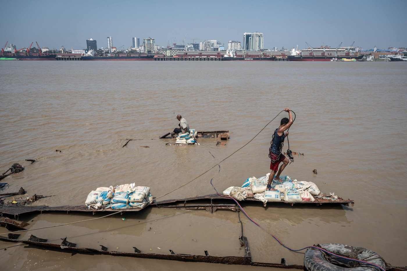 Marea garabi bihurtuta Neketsua da hondakinak ibaiaren mareak erabiliz ateratzea, eta pazientzia izugarria behar da horretarako. «Ez dugu garabi astunik ontzietatik tira egiteko», azaldu du Nyuntek. «Marea 12 oinetara igotzen denean, ontzia 10 oinetara mugi daiteke, eta orduan lehorrera eraman dezakegu».