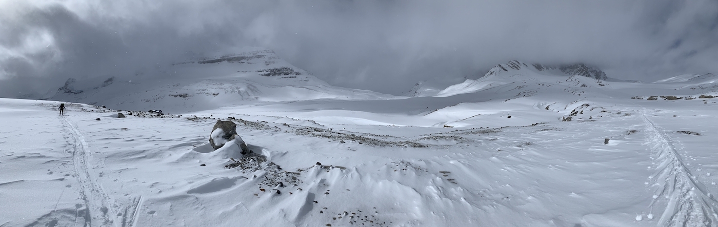 Banffetik Jasperrera bidean dagoen glaziarren autobide ezagunaren inguruan aurkitzen da Wapta izotz eta elurrezko zelaia, mendien goiko aldean. Han bertan izan gara bost egunez Wapta ibilbidea mendiko eskiekin egiten.