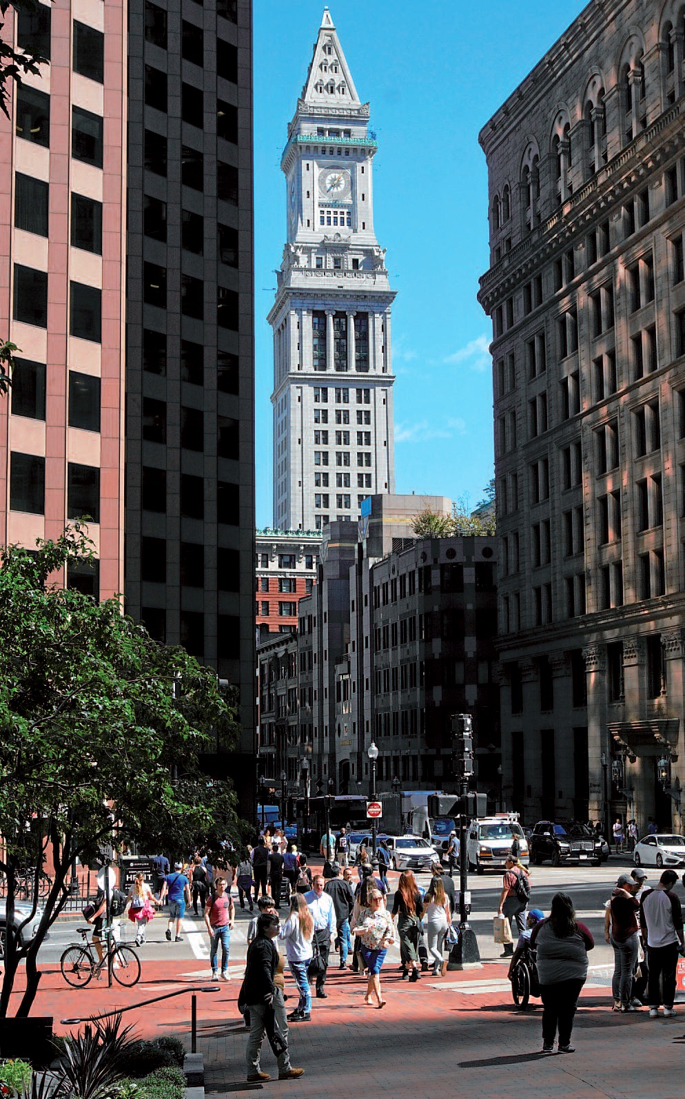Airetik ikusita, Bostongo erdigunea urez inguratutako eraikinen gune trinkoa da, baina bere kale estuen, adreilu gorriko etxeen eta hiriaren profila inguratzen duten kai zaharren artean jaitsi eta sartzean, zera egiaztatu dugu, bere espaloien gainean baino gehiago historiaren gainean gabiltzala. Bostonen dena gertu geratzen da; beraz, Charles eta Mystic ibaien artean bildutako unibertso hau zeharkatzeko modurik onena oinez egitea da.