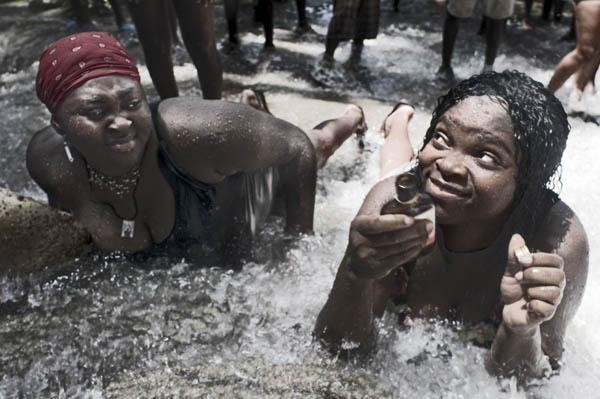 Todos los años, hacia el mes de julio, miles de peregrinos se desplazan al lugar donde, según dicen, apareció la diosa Erzulie. Caminan durante horas hasta la cascada y se dejan bañar por sus aguas. Los cuerpos, los cánticos y la música rará, la más común en las celebraciones vudúes, se mezclan con perfumes de hierbas y pociones preparadas para pedir favores a los espíritus. Los creyentes pasan horas bajo el sonido y el frescor del agua, rezando y abrazándose. Muchos lanzan al cielo su ropa vieja, símbolo de un pasado que quieren dejar atrás. Y algunos consultarán a los hougan (sacerdotes) o a las mambó (sacerdotisas), poseídos por los loas (divinidades del vudú).