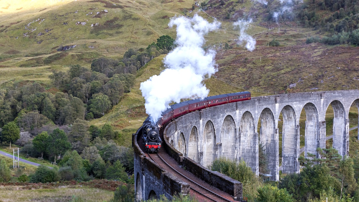 Harry Potter, sin duda, ha contrubuido a la fama de Jacobite, una histórica locomotora de vapor que recorre bellos paisajes escoceses, porque fue el que inspiró al famoso Expreso de Hogwarts. Cubre el trayecto entre Fort William y Mallaig y atraviesa impresionantes paisajes durante 84 millas (ida y vuelta). Arranca cerca de la montaña Ben Nevis y, tras hacer parada en la estación Arisaig, discurre cerca del profundo lago de agua dulce Loch Morar, el River Morar, el lago de agua marina Loch Nevis, Glenfinnan, Lochailort, Arisaig y Morar. Uno de los tramos más esperados del trayecto es el que recorre el viaducto de Glennfinan.