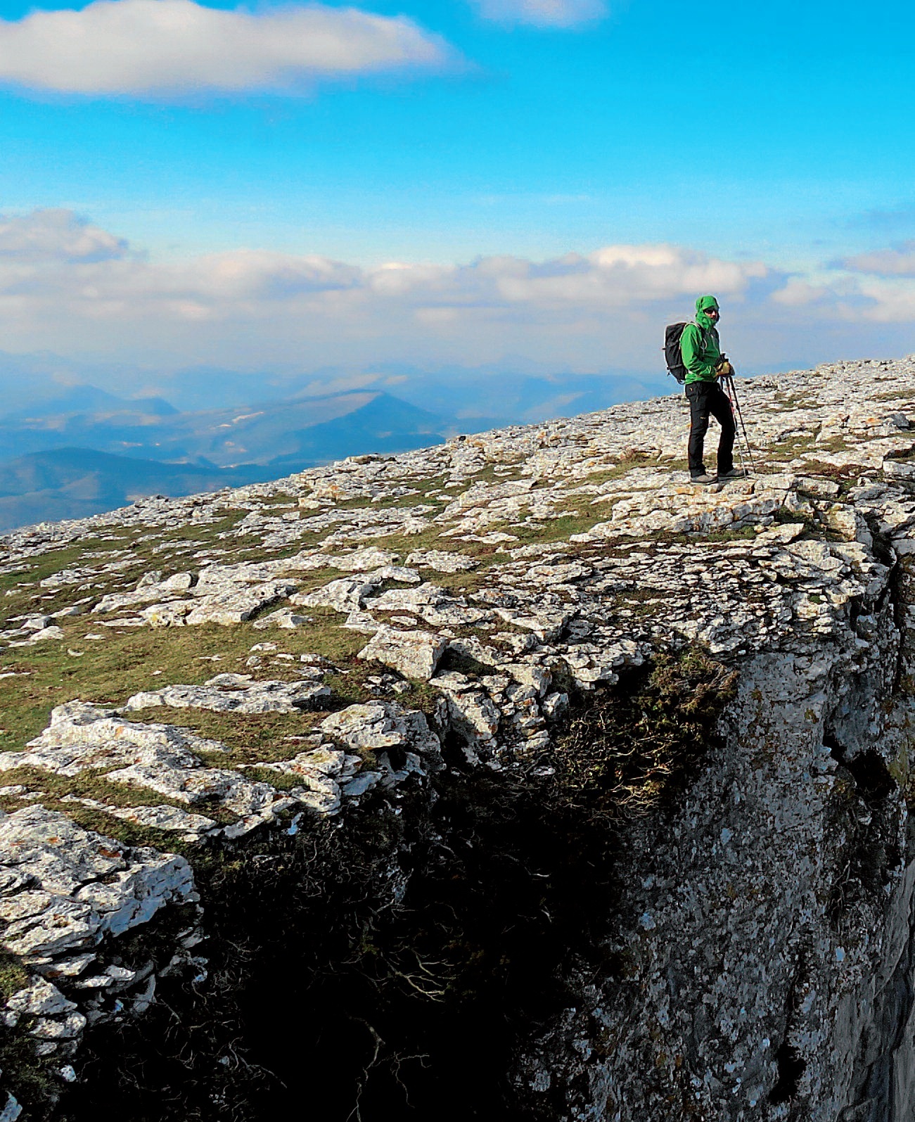 Pistan barrena, mendizalea Utah-ko Monument Valleyn balego bezala sentitzen da. 500 bat metroko garaieran, zuhaiztia atzean utzi eta haitz ikaragarriak harro-harro agertzen dira aurre-aurrean. 200-300 metroko haitz bertikal erraldoiak dira, eta edozein unetan gainera eroriko zaizkigula dirudi. Haitzak bezain ikusgarria da haitzetarainoko belar malda. Oso tentea, eta zuri kolorez jantzia. Aroko atakara hurbilduta, putre taldeak agertu dira haitzetan, eta urrunean, Peña del Ahorcado eta Angulo mendatea bistara daitezke, Burgosko lurretan dagoeneko.