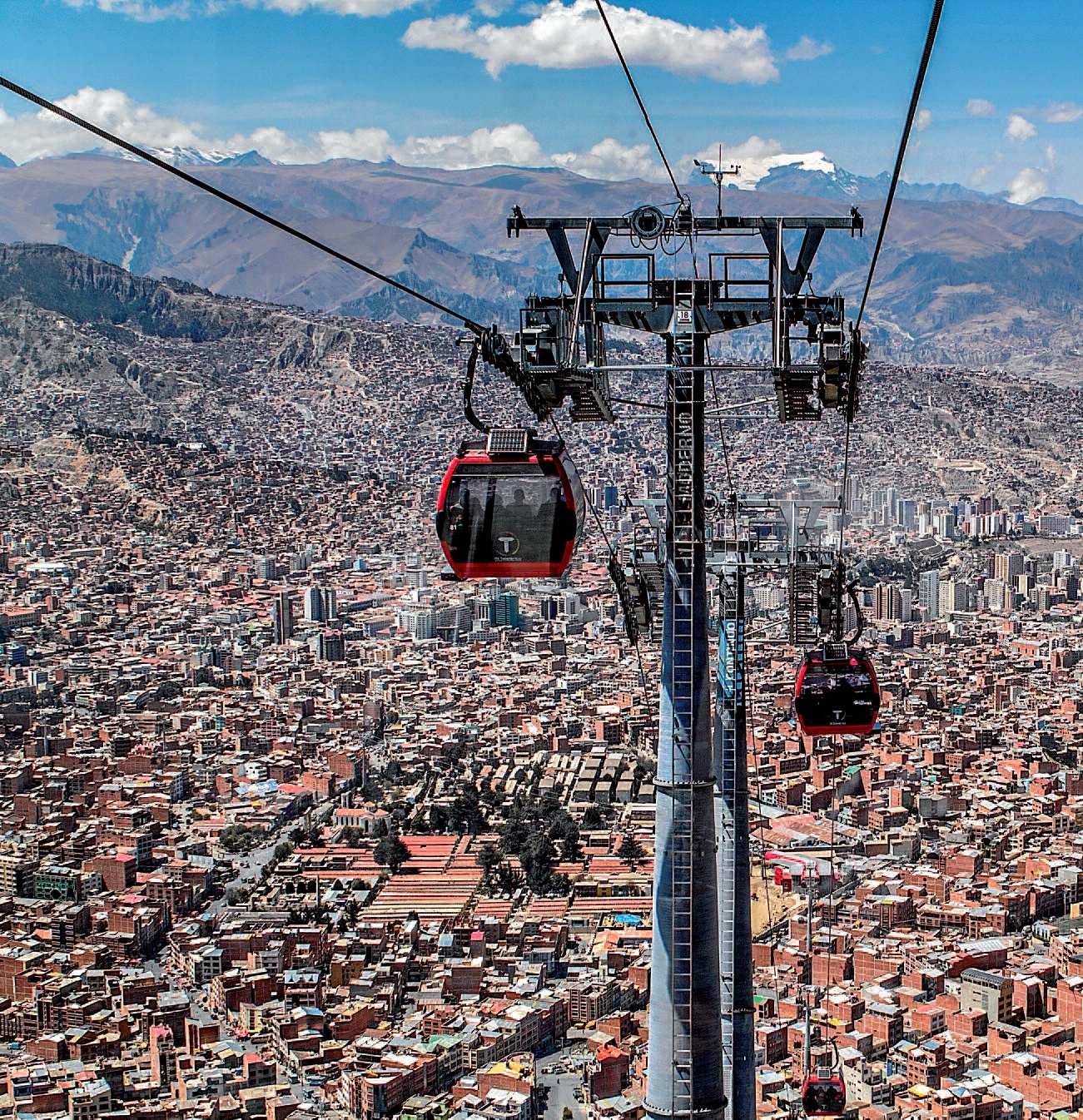 Motxila aireportutik jaso eta teleferikoan sartzeko garaia iritsi zait. Hurrengo helmuga: La Paz. «Hiri mirariaren» izendapena jaso duen Boliviako bigarren hiriburuko erdigune historikoa ondo ikusten da hemendik, baita, maldan gora, etengabe «eskalatzen» ariko balira bezala, dauden etxeak. Tarte txiki bat ere ez dago eraikuntzarik gabe. ‘Mi Teleférico’ (nire teleferikoa) deitzen diote funikularrari. Munduko garaiena omen da (itsas mailatik 4.000 metrora) Guiness liburu ospetsuak horrela egiaztatuta, eta 30 kilometroko tartea egiten du.