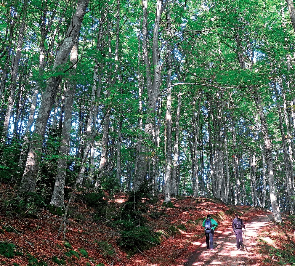 Baso itxia du Kantabria mendikateak. Pagadi dotorea, pago luze eta sendoekin. Igotzen-igotzen, xenda estutu egiten da eta ezpelak ordezkatzen du pagoa. Galtzak eta mahuka luzeko kamiseta eramatea komeni, begetazioa oso hostotsua baita. 1.300 metroraino basoak apenas erakusten du argi-ilunik. Leiho txiki batzuk baino ez, Lagran herria ikusteko, bailaran. Ordu eta erdiko bidea egin ostean, ezpela desagertu egiten da, eta Palomaresko iparraldeko hormatzar handia begien aurrean azaltzen da. 100 metrotik gorako desnibela duten harkaitz bertikalak.