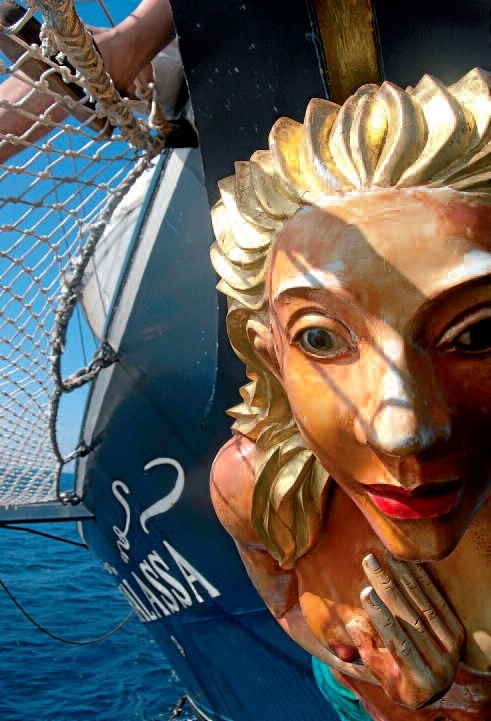 Thalassa arrantza-ontzi zahar bat da, tall ship bihurtua; hau da, marinelen nazioarteko argotean horrela izendatzen dituzte taxuera klasikoa duten belaontzi dotoreak. Hiru mastako goleta-brigantin gisara itxuratutako masteria dauka: lauki erako belak trinketan (aurrealdeko masta) eta masta nagusian eta mesanan (atzekoan) hiruki erakoak, bai latindarrak, bai tapikuak. 47 metroko luzerarekin eta 8 metroko zabalerarekin, masta nagusiak gora egiten du, oso gora, zeruarekin nahasteraino, 35 metro luze baita. Bere fisionomia deigarria da, inondik ere, arrasteroaren eta belaontziaren arteko nahasketa moduko hori: bataren branka biribilduxea, karel goratu eta ondulatua, zubia eta kamainak erditik txopara; eta bestearen masteria zorabiagarri, dotore eta ahaltsua.