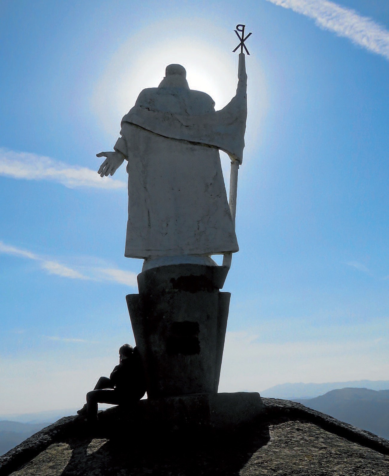 Azpeitiarrek ezaguna dute figura, baina lehen aldiz ikusten duenarentzat ikaragarria da. Hiruzpalau metroko estatua bat bailarari begira... Azpeitian Loiolako San Inaziori dioten miresmenaren erakusle. Kasualitatea edo ez, estatua Loiolako santutegiaren parean dago, ia-ia. San Inaziok halako gurtzarik merezi duen edo ez eztabaida luzea litzateke, eta eztabaidan azpeitiarrek parte hartzen badute zeresanik ez. Kontua da dotorea dela estatua, txoko ezin aproposagoa lasai egon eta Urola bailara 900 metroko balkoitik ikusteko. Eta ondoan sagardo botila eta ogitartekoa badituzu, zeresanik ez. Bakarren batek pentsatuko du, horretarako motxilan karga eraman behar! Ba ez, txango honek duen gauza onetako bat, onena ez esatearren, Xoxoteko aterpe itzela delako.