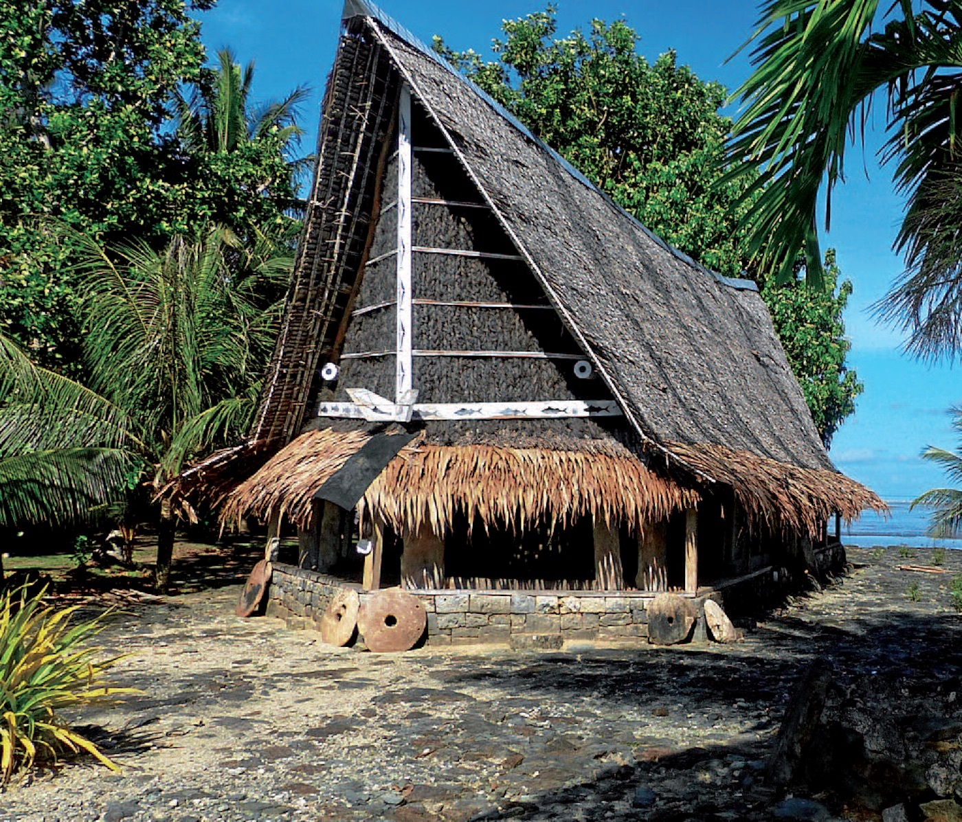 Itsasertzera iritsitakoan, faluw edo «gizonen etxe» bat dago, hondartza txiki baten eta arrezifearen parean. Herri guztiek badute gisako eraikin bat, Mikronesiako beste zenbait uhartetan legez: enbor luzez, banbuz eta lastozko sabaiz eraikitzen dituzte, xume bezain praktiko. Bisitariak euren herrietatik gehiegi urrundu eta ilundu aurretik etxeratzeko beranduegi eginez gero, gaua bertan pasatzeko lekua izan ohi zen. Gainerakoetan, herritarren bilgunea; besteak beste, istorioak kontatzeko eta herriko neska-mutilei (bai, emakumeen etxeak ere badaude) artisautza, arrantza edo nabigazioa irakasteko.
