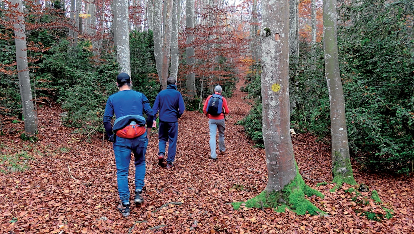 Mendia inguratzea baino ez da falta, berriro Korreseko atseden gunetik datorren bidera bueltatzeko. Berriro hosto alfonbra batean barrena. Hosto, onddo eta perretxiko, kartelek ondo dioten moduan, Arraia-Maeztuko gune hau onddo eta perretxiko eremu baita. Betiko legez, norbait, edo zenbaitzuk, gu baino lehen pasatu dira lur emankor honetatik, eta onddo goxoenak saskian eraman ezkutuan... Jan ezin direnak bakarrik utzi dituzte, gu pasa garenerako...