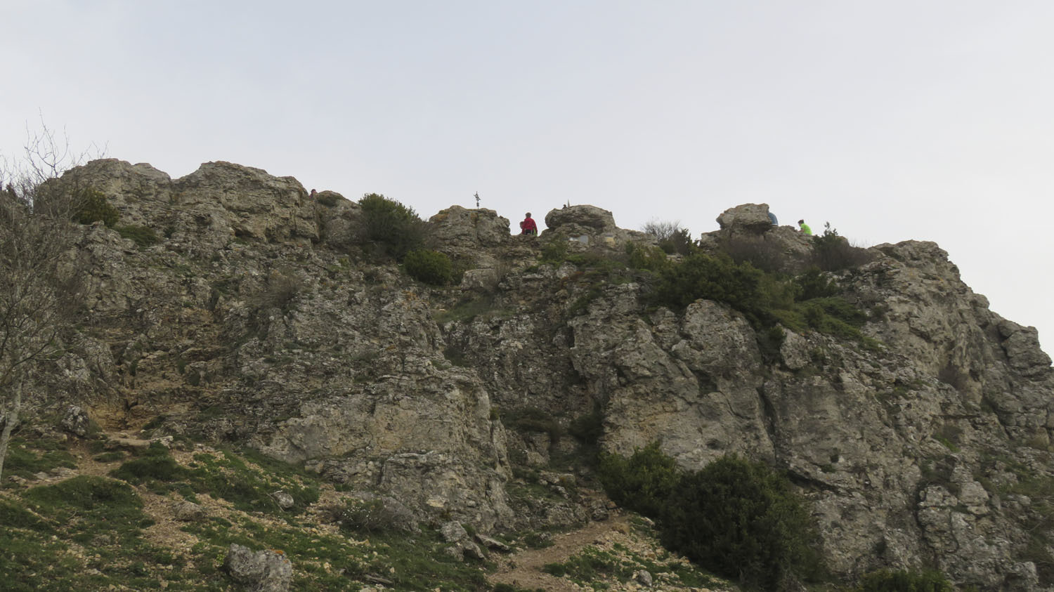 Bide bazterrean autoa uzteko tokia dago, baina tokirik erosoena gaina igarota dago, ezkerraldean, Errioxako lurretan dagoeneko. Mendebaldera, gainean bertan, Toloñoko ermitara daraman xenda hartu behar da, pista zatarra saihestu nahi bada. Aste Santuko lehen eguna da, jende franko dabil mendian gora eta behera, eta zeruan Sahara aldetik etorritako ganduak zerua lausotzen du. Ehiza postu batzuk daude lehen aldapan, eta gain batean Toloño mendilerroko ekialdeko ertz tentea ikusten da, Bonbalatxi Haitza (1.224 m). Hesi metaliko bat zeharkatu behar da. Pista ondoan agertuko zaigu, baina Bonbalatxi haitzeko ipar horman barrena egingo dugu, pista saihesteko.