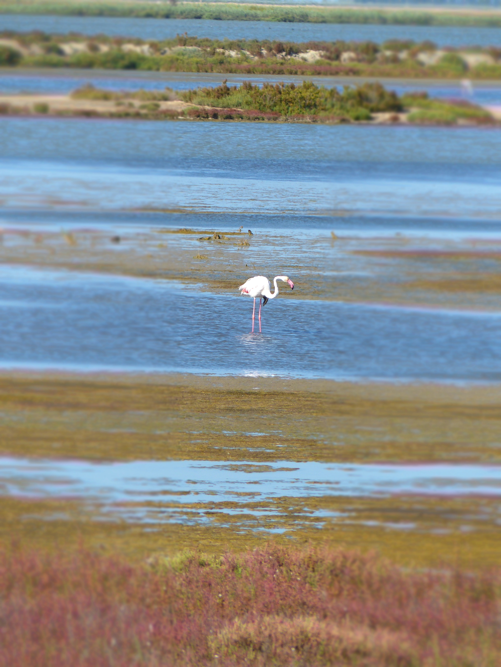 Flamenko bat arroz-zelaien gainean hegaldatzen dabil. Lumadi arrosa baino gehiago, bere silueta luzanga du bereizgarri. Bide estu batetik geratu gatzaizkio begira. Izan ere, ehunka bidexka daude inguruotan; lerro zuzenekoak, udako lehen asteetako berde bizi bereizgarria eskaintzen hasi zaizkigun zelaien artean.