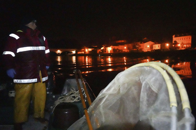 Gaua ez da oso emankorra izan. Bi ordu eta erdiko lanaren ostean, eskukada bat angula arrantzatu du Aturriko arrantzaleak; orotara, 150 gramo. Angulak kiloka arrantzatzen ziren neguko gaualdi zirraragarriak aspaldiko kontua dira jada gure ibaietan.