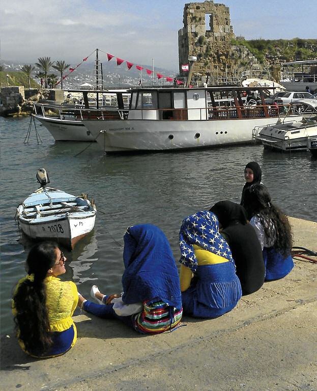 Bibloseko baretasuna kostaldearen lerroari bakarrik dagokio. Biztanleen zati handi bat kristau maronitak dira, eta ez dute ezkutatzen, guztiz kontrakoa. Herrialdeko tentsio erlijiosoa, Biblosetik oso hurbil gertaturiko gerrek eta atentatuek metronomo baten erregulartasunarekin islatzen dutena, ia ez da sumatzen hemendik. Harridura handia sortzen du herrialdeko albistegiak kale-borroka amaigabeei eta bonba-autoei buruz hitz egiten hasten direla ikusi eta autoz ordu erdi eskasera gertatzen diren gauzak direla jakiteak, Bibloseko jatetxe eta hondartzetan bertakoak eta bisitariak alferkerian dabiltzan bitartean, begirada itsasoaren urdin infinituan galduta.