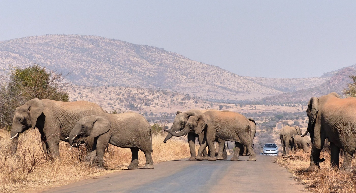 Sartu eta gutxira jirafa baten sama luzea agertu da sasi artean, segidan errinozero eder bi, eta handik gutxira basozainak bideetako bat itxita dagoela esan digu: «Elefante talde handia dago erdian; hobe beste nonbaitetik jotzea». Afrika hegoaldeko parke nazionalen beste abantaila da, Kenya, Tanzania eta antzekoen aldean, norbere kontura antolatzea oso erraza dela: alokatutako autoarekin erraz sartu eta gidatu daiteke, eta ez dago zertan txango garestirik hartu Afrikako faunaz gozatzeko. Hori bai, noizean behin, merezi du txangoak ere, bertako adituek inork baino hobeto baitakite zein basapiztia non dabilen.