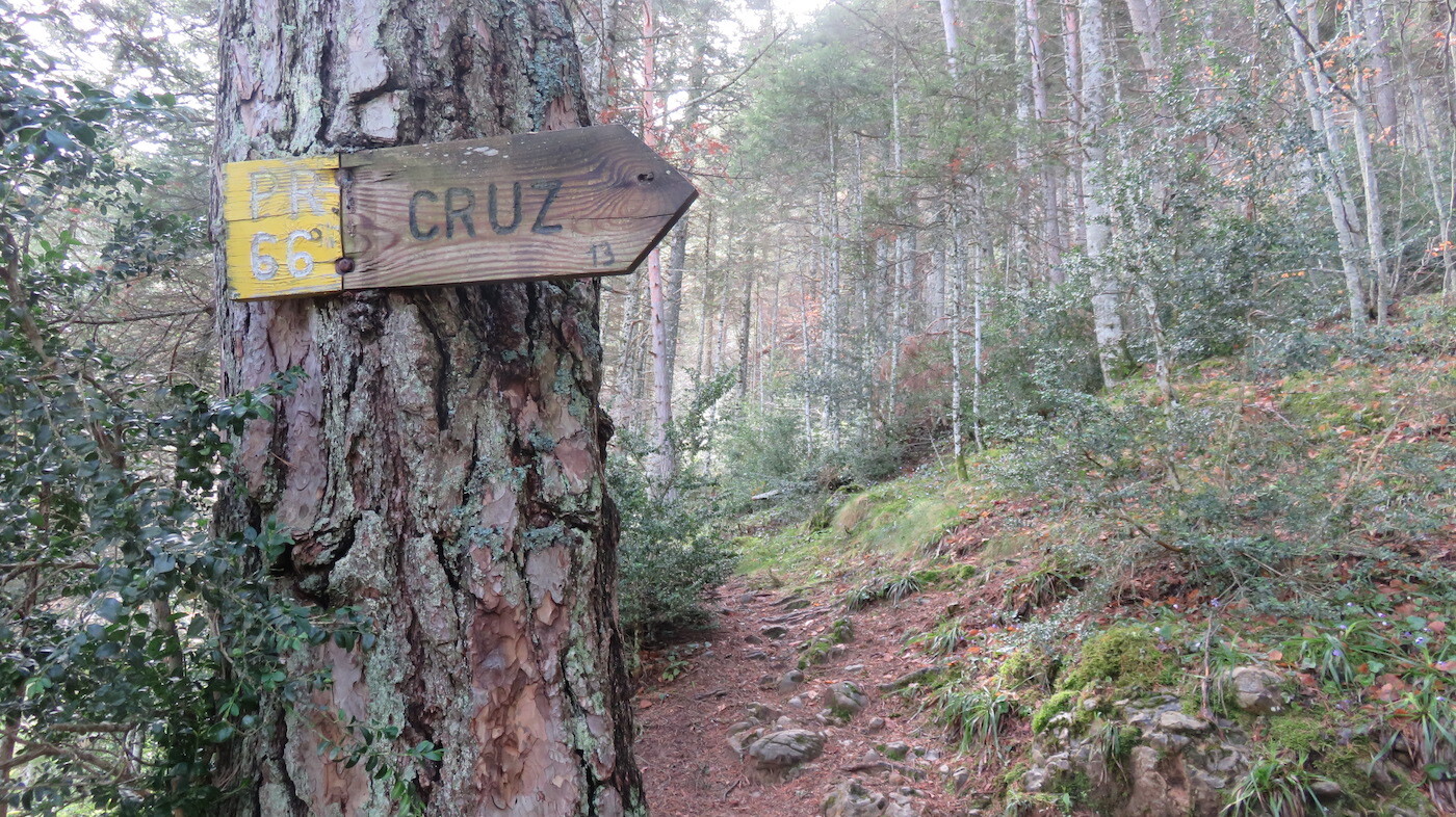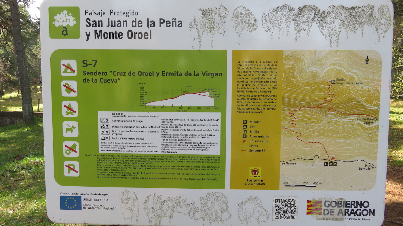 Igoera Oroelgo atsedenlekutik, Paradoretik, hasten da. 50 autorentzako aparkalekua daukan toki ederra da, Punta Uruelgo ipar isurialdean. Pinu eta izei baso itxian barrena egiten du bideak, eroso, bihurguneari bihurgunea lotuz. 37 norabide aldaketa daude denera, eta horrek erakargarri egiten du igoera, ez baitago malkar handirik. Ordubete eskaseko bidean apenas dago argigunerik, bat edo bi, baina horietatik Jaka herria eta Pirinioak dotore agertzen dira.