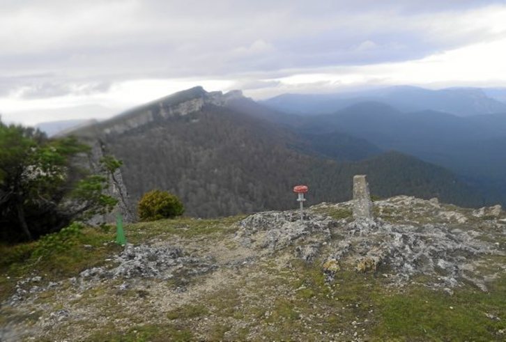 Volveremos sobre nuestros pasos para continuar por la loma norte hacia el oeste. Saldremos a una larra en la que deberemos girar a la izquierda para avanzar por una pista hasta el siguiente collado. En este collado repetiremos la jugada anterior, esto es, seguiremos los mojones que van por el filo de la montaña. Cuando estemos pasando por la vertical cara norte del Mota, veremos a la izquierda un empinadísimo sendero que nos deja en la misma cumbre del Mota (1.314 m).