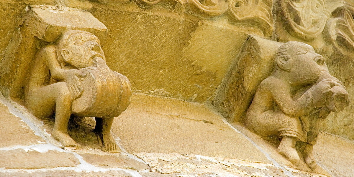 Antzerki emanaldi bat balitz bezala, ikuskizuna urtean behin jazotzen da, udako solstizioan: tradizio paganoentzat, egun magikoa. San Joan bezperan bisita gidatuak antolatzen dira orain, teilatu-hegalaren azpitik irteten diren harburutxoak banan-banan eguzkiak nola argiztatzen dituen miresteko. Arkitektonikoki paregabea dela adierazteaz gain, fenomenoak sakontasun politiko, sozial eta espirituala uzten du agerian. Izan ere, portadako eta teilatuko harburutxo horietan ez dago kristau irudirik, ludikoak eta profanoak baizik. Buruak festa pagano bateko partaideak dira: musikariak, dantzariak, biluzik eta mozkor dauden gizon eta emakumeak, bihurrikariak… baita hezitako hartz bat ere!