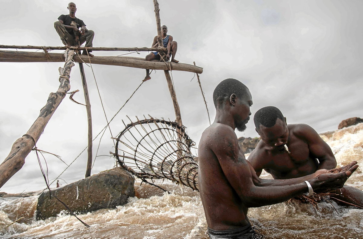 Bertako kulturaren eta identitatearen sinbolo kolektiboa den eta tolimo deritzon sistema baliatuz arrantza egiten dute. Elkarren artean atxikita dauden eta harrizko zulo naturaletan paratzen dituzten egurrezko zutoin batzuen bidez, aldamioak osatzen dituzte. Egitura horietatik, liana batzuekin loturik, tranpa zorrotz handiak eskegitzen dituzte, eta hauek ur-korronte indartsuan murgilduz harrapatzen dituzte arrainak. Ikusgarria bezain arriskutsua, haien ogibidea.