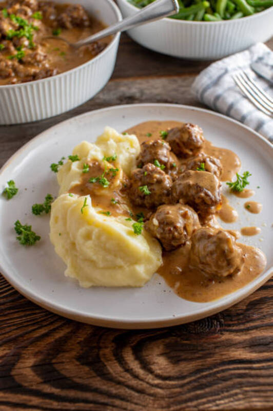 250gr. carne de ternera, 250gr. carne de cerdo, 2 rebanadas de pan, 1 diente de ajo, 1 huevo, perejil, leche, sal, 150gr. queso cremoso. Salsa: 1 cebolla, 2 dientes de ajo, 1 zanahoria, 1 tomate maduro, caldo, aceite, sal. Puré: 2 patatas, 200ml. leche, aceite, sal.