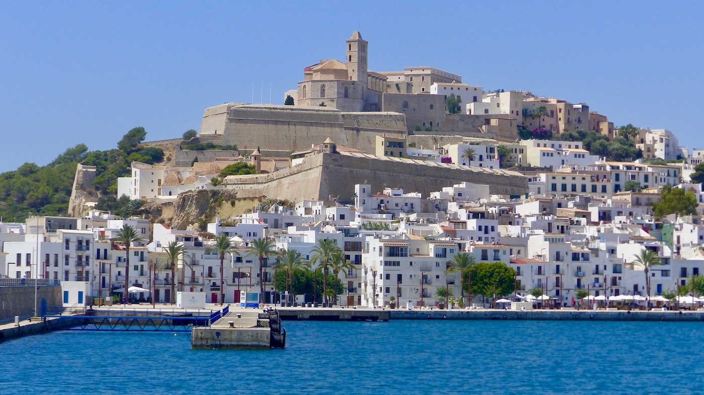 Itsasoz etorritakoan ere harro ageri da hiri zaharra harkaitzean gora ongietorri egiten; Platja d’en Bossako hondartza luzearen amaieran erreparatuz gero, Carregador dorrea ere ageri da, irla piraten jomugan zegoen sasoiak gogoan. Gauez, berriz, fresko eta atsegina da Dalt Vila, mokadu bat hartu, zeozer hartu edo gau luze baten abiapuntu izateko. Behean, hirian, taberna, saltoki, eta gainerako lekuekin batera, badira gune kultural garrantzitsu bi: Arte Garaikideko Museoa, eta feniziar nekropoli bat bisitatu daitekeen Puig des Molins-eko museoa.