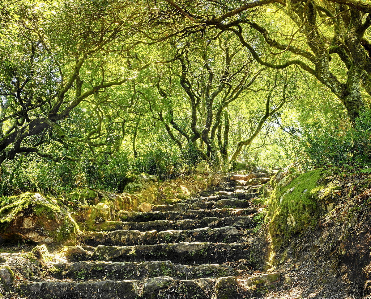 Landaketa eta osaketa prozesuak mantso doaz. Ehun hektareatan berrehun eta berrogeita hamar espezie baino gehiago daude landatuta. Muinoaren punturik goreneraino igotzea guztiz gomendagarria da, bertatik hotelaren eta inguruko baso txikiaren ikuspegiak miresteko. Bertako bideak, hostoz eta goroldioz estalita dauden harrizko iturri ikusgarriez eta granitozko eskailerez josita daude.
