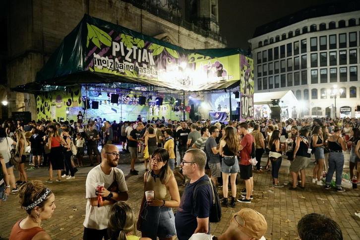 Konpartsetan askotarikoa da eskaintza, aspertzeko borondatea jarri beharra dago. Hemengo DJak eta hango erromeriak estilo guztietako taldeekin nahasten dira Arriaga atzetik hasi eta Udaletxera arte hedatzen den txosnagunean. Gaztetxoenek, eta baita lurretik altxatzeko komeriak izaten hasi diren batzuk ere, Arriaga aurrean eta Areatzako kioskoaren bueltan jarrita edaten dute txosnetako jaira batu orduko. Boteiloi zaleentzat ere badaude aukerak, beraz.