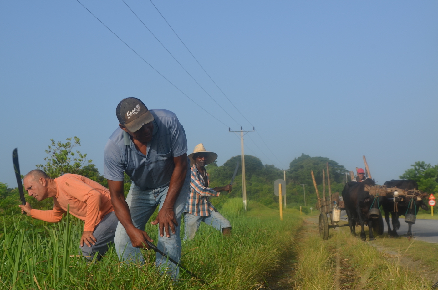 Bide bazterren txukuntasunak harriturik, zenbait langilerekin geratu naiz berriketan. Belarra mozten ari dira matxetearen laguntzaz. Gerria makurtu eta etengabeko eskuin-ezker mugimenduz mozten dute dena altuera berberean utziz. Ez dira soldatapeko langileak, boluntarioak baizik, eta uztailaren 26rako dena erabat garbi utzi nahi dute, Moncada kuartela hartzen saiatu zireneko 70. urteurrena ospatzen baita.