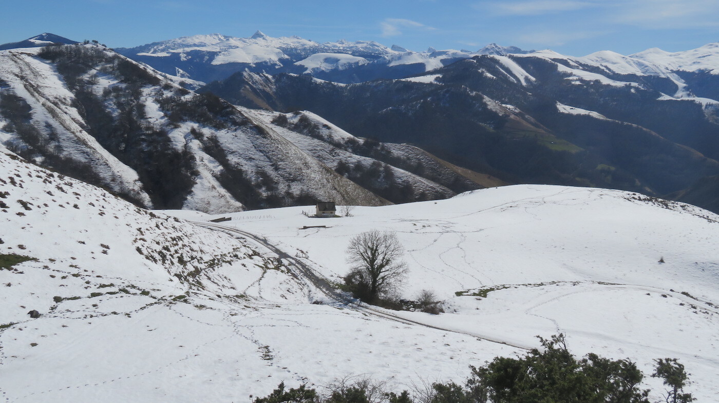 Autoa 950 bat metrora utzi eta sekulako ikuspegia azaldu zaigu begien aurrean: kabalak libre elur azpian belar matazak bilatzen, Orhyko kukulla parez pare elegante (2.017 metro), eta ekialdera, Otsogorrigane (1.923 m.), Barazea (1.893 m.), Kartxela, Lakhura, Arlas, Hiru Erregeen Mahaia (2.444 m.) eta Auñamendi magikoa, eder-eder (2.507 m.). Zuberoak hainbat begiraleku on ditu Pirinioak ikusteko, eta Irati oihanaren iparrean dauden mendiak dira politenetakoak.