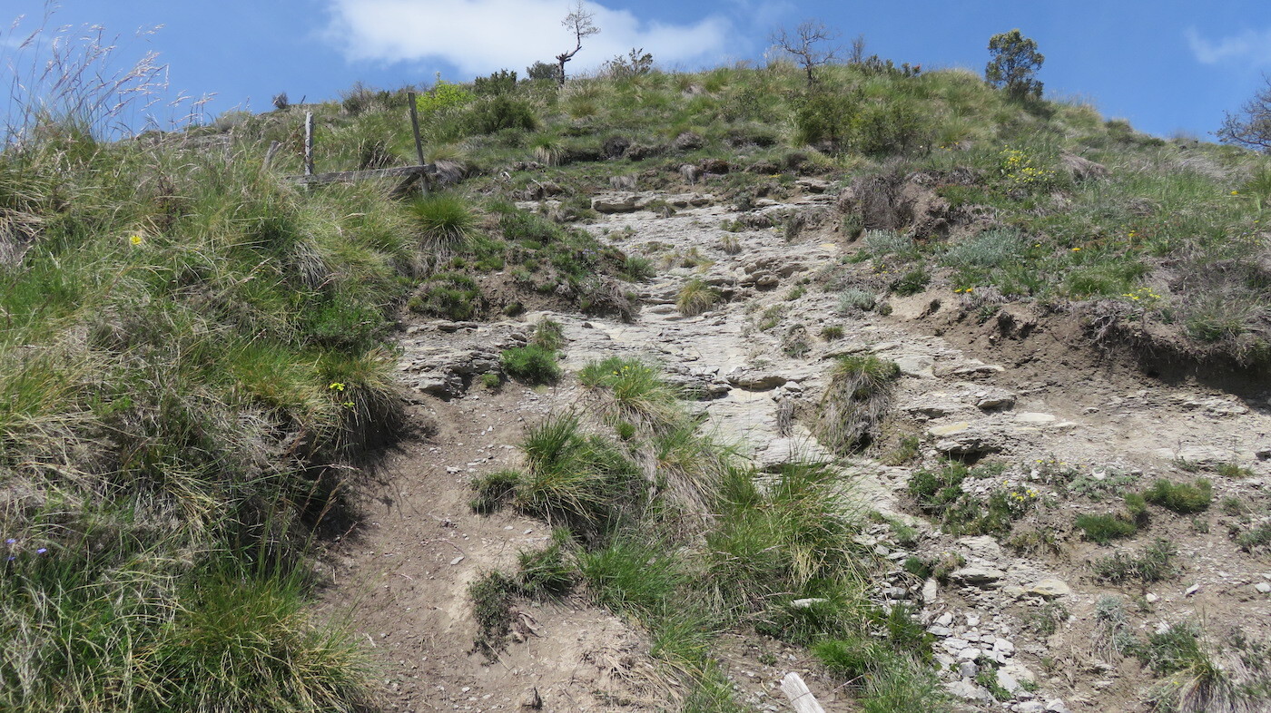 Pistako erosotasunak bukatu dira, eta aldapa serioa bilakatuko da berehala. Tarte txiki batean halako harri gune bat zeharkatu beharko dugu, tentuz, eta beharrezkoa bada, eskuak erabiliz. Hori pasatuta, xendak konoaren bizkarra bilatzen du, ipar isurialdetik tontorreko begetazio gune bakarra zeharkatzeko. Arteak eta ezpelak dira nagusi, Marindako ipar isurialdean.