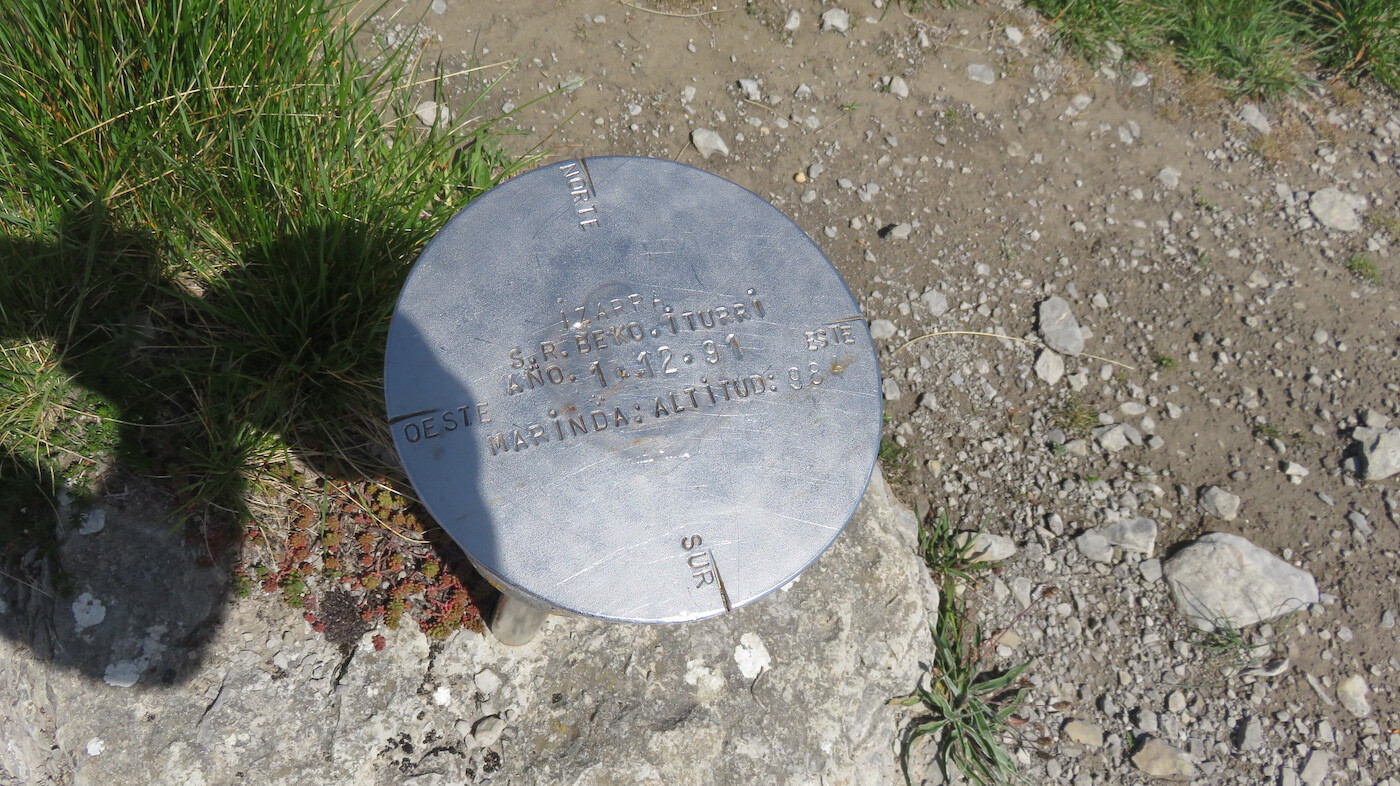 Arreta jarri behar dugu zabal honen bukaeran, pistak eskuinerantz egiten duen bihurgune bakarrean mendi-bide bat hartu behar dugulako. Ataka edo ate metaliko berde bat zeharkatu behar dugu. Ez dago galbiderik, ezinezkoa baita ate berde hori ez ikustea. Atea zeharkatuta, 20 bat metro ezkerrera egingo dugu, xenda garbi samar bat hartzeko, mendebaldera. Hari segi, gailurreraino.