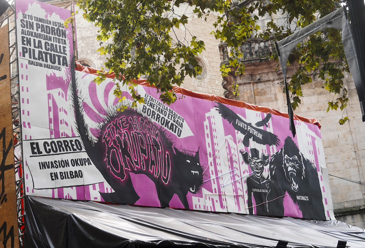Kranbak okupazioaren aldeko aldarrikapenak bildu ditu dekorazioan. (Marisol RAMIREZ | FOKU)