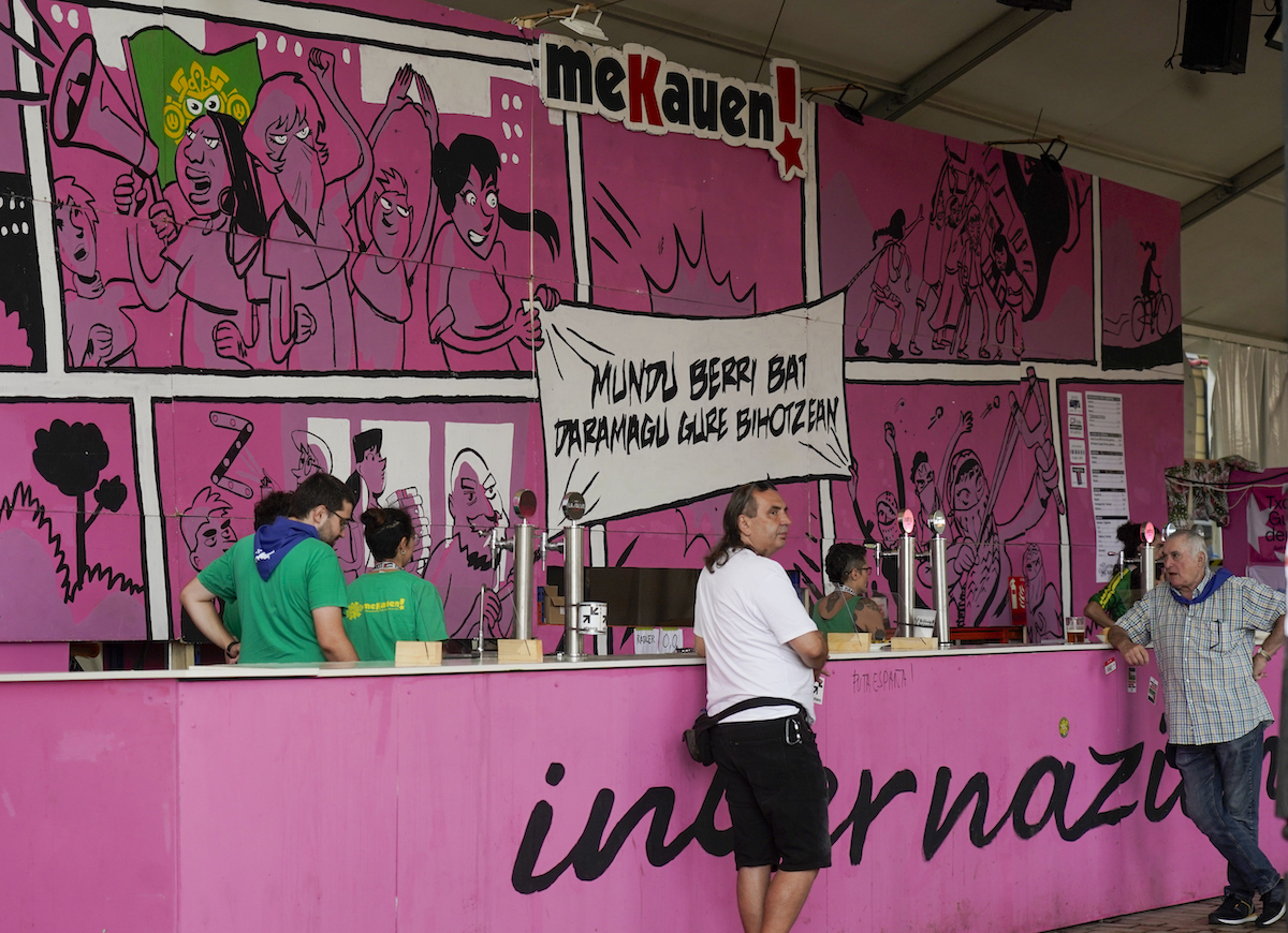 Euskalgunean, Hau Pittu Hau konpartsak euskararen aldeko aldarriei eskaini die txosna. “Hiri grisa” euskarak koloreztatutakoarekin alderatu dute. Eguzkizaleek, aldiz, turistifikazioa piztia bezala irudikatu dute, fenomenoaren ondorioak modu grafikoan zein idatziz adierazita. Txori Barrotek, eraso matxisten aurkako leloaz gain, konpartsaren izaera ezin hobeto irudikatzen duen olana prestatu du.