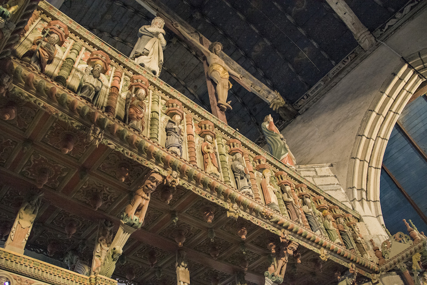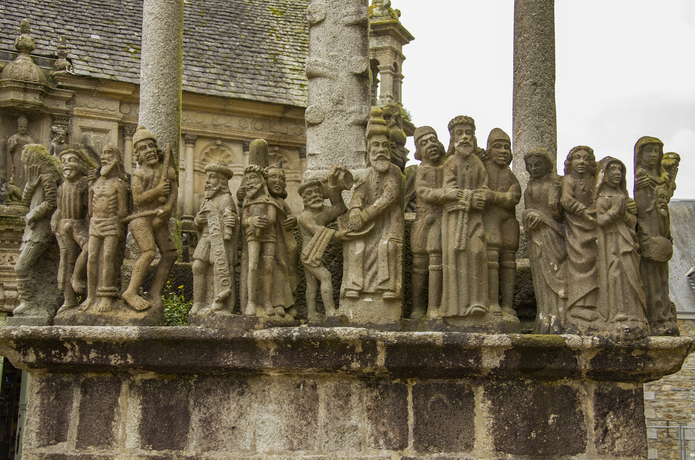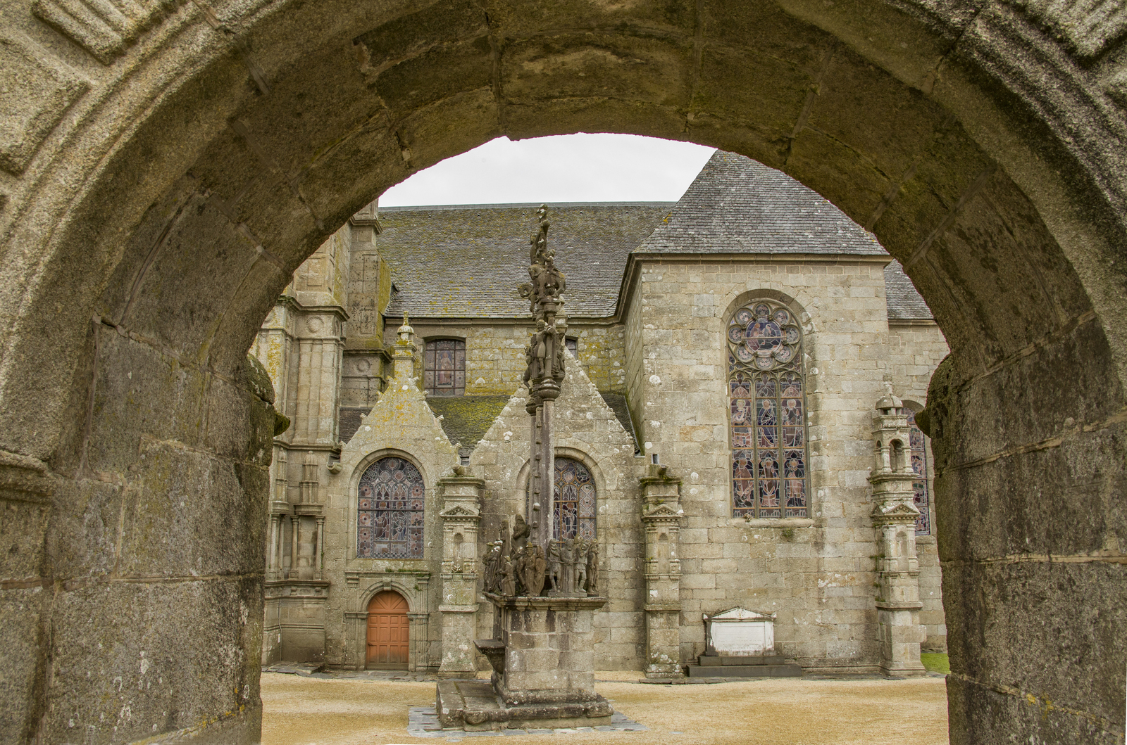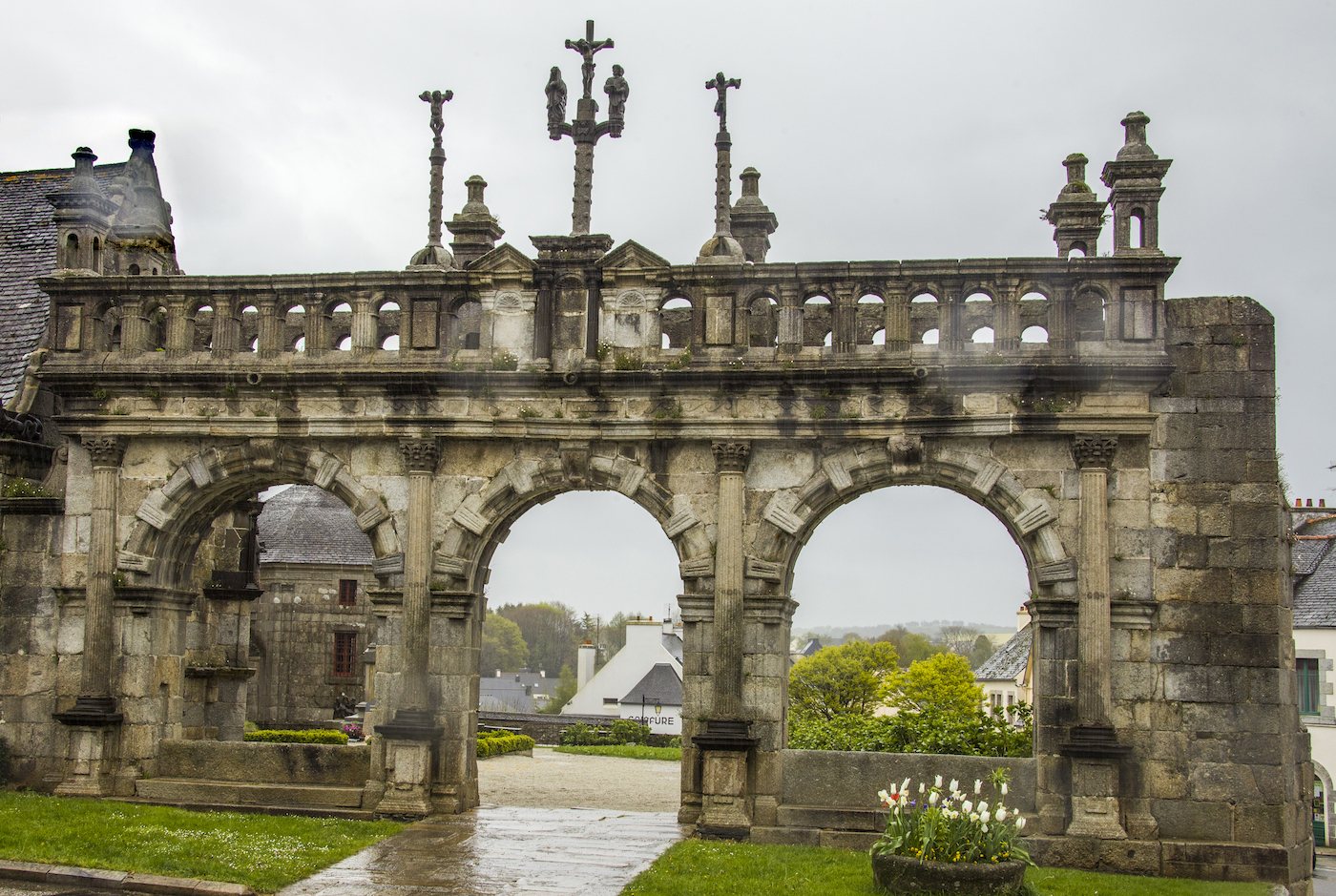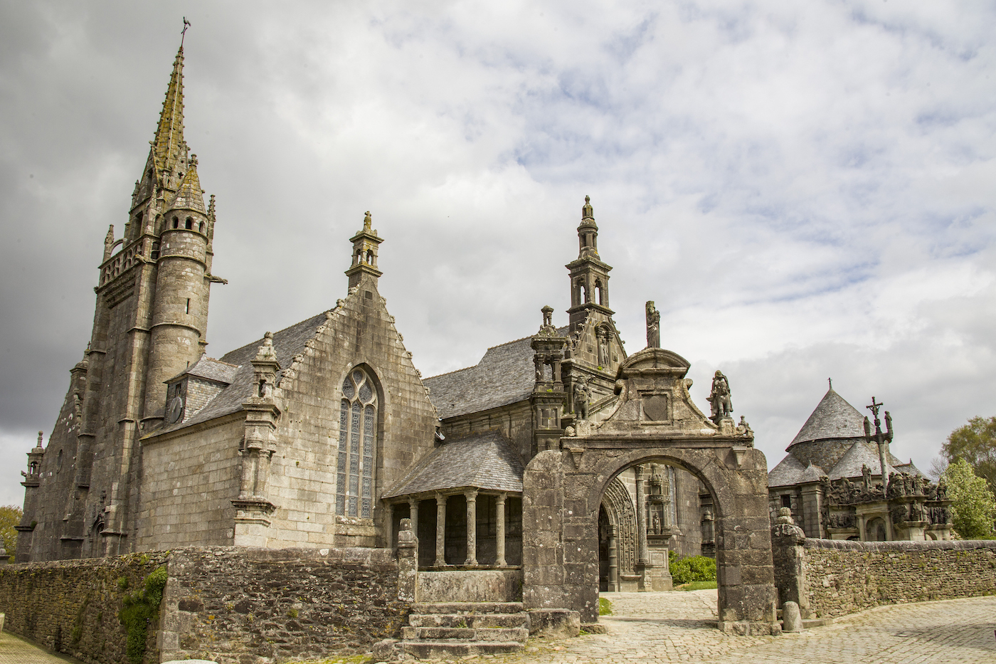 2022 OTS. 21 - 11:55h Les enclos paroissial: ruta sacra bretona Entre Morlaix y Landerneau, en el olvidado interior de Bretaña, se reparte una magnífica colección de iglesias, osarios, calvarios, arcos y cementerios que, agrupados en recintos cerrados, denominados enclos en francés, son la expresión de una religiosidad rural más allá de la fe. Calvario de Guilimiau. (Xabier BAÑUELOS) Texto y fotografías: Xabier BAÑUELOS Caminando por las calles de Sizun, se cuelan en el aire desde una ventana abierta las notas de “Bro gozh ma zadoù” (Vieja tierra de nuestros padres). Rápidamente se reconoce la voz de Alan Stivell recreando este canto convertido en himno oficioso de la Bretaña continental. Y junto a él, una pléyade de cantautores y cantautoras, Gilles Servat, Louis Capart, Gwennyn, Renaud Detressan, Rozenn Talec, Cécile Corbel, Clarisse Lavanant y los grupos Soldat Louis y Tri Yann. Bretones de corazón, “breizhiz a galon”, que, juntos, cantan a su tierra. Aquí, en Sizun, comienza el confín de Bretaña, el solar de la antigua Bro-Leon. Es la barbacana de las nueve antiguas provincias celtas de la Armórica occidental, el “país frente al mar” rematado por el desafiante Finisterre del norte. Se dice en los alrededores, nos sin cierta socarronería, que es “la región de los curas” debido a su fervor cristiano y a sus numerosos enclos paroissial. Pero no sería justo atribuirle solo a ella esta etiqueta ya que comparte la explosión de templos con las también antiguas provincias de Bro-Dreger (Trégor) y Bro-Gernev (Cornouaille). Inevitablemente, no deja de arrancarnos una sonrisa el susurro de la canción cuando llegamos a la Place de l’Abbé Broch… Douar ar Sent kozh - tierra de viejos santos-, nos dice cuando aparece ante nosotros, como un milagro, el que es una de las más bellas edificaciones dedicadas en Bretaña al dios de los cristianos.Los recintosHe de confesar que los descubrí por casualidad. Había llegado a la patria de Astérix y Julio Verne sin saber de su existencia. Fue paseando por Saint-Thégonnec cuando al toparme con su iglesia solo pude exclamar: “¿y esto?”, una vez que la sorpresa me dejó articular un pensamiento. Me encontraba ante una lección de arquitectura de tal singularidad que mi mente no lograba ubicarla, encajarla, de manera adecuada en una población rural de apenas 2.600 habitantes. Inmediatamente me puse a indagar descubriendo que no sólo no era una excepción, es que había al menos una treintena de conjuntos similares en el entorno que rodea el Parque Natural Regional de Armórica entre Brest, Quimper y Morlaix. Me encontraba frente a un enclos paroissial, uno de los “recintos parroquiales” o ”recintos bretones” que salpican esta geografía. Constituyen la manifestación religiosa y arquitectónica más exclusiva de Bretaña y una de las más singulares del Estado Francés. Grosso modo se trata de agregados compuestos por diversos elementos presididos por una iglesia y rodeados por un muro. Dicho así, la propuesta no parece especialmente tentadora. Sin embargo, tiene una serie de características que pronto nos despierta el interés. En primer lugar está lo referente a su concepción. Son, como indica su nombre, conjuntos parroquiales, no monásticos, es decir, pertenecen a la rama secular. Son diocesanos, no sujetos a una orden, sino de uso común y, más determinante si cabe, construidos por iniciativa comunal. Esto los convierte en templos de y para el vulgo que surgen directamente del mundo rural, sin vínculos con grandes núcleos urbanos y ligados íntimamente a las gentes de poblaciones pequeñas. Nacen por lo tanto arraigadas a la tierra y a la cosmogonía vernácula de la Bretaña popular de siglos pasados. Esto les dota de un muy interesante -y a veces poco sutil-, punto de sincretismo ligado al culto a los muertos y a rasgos de la mitología celta, casados con una espiritualidad de carácter naif pero profunda, que se manifiesta, por ejemplo, en muchas de las representaciones de su imaginería.En segundo lugar, están sus elementos constructivos ya que, más allá de su sobresaliente calidad arquitectónica, los elementos que lo componen son muy peculiares. Lo que primero encontramos es el muro, que delimita el enclos, el recinto, en cuyo interior se distribuyen el resto de componentes. La tradición de estos cercados viene del s. XII y su función es perimetrar y proteger el espacio sagrado. Abriendo el muro nos recibe la puerta triunfal, una puerta con arcadas inspirada en el arco romano, normalmente muy ornamentadas y con un toque de grandiosidad. Se las conoce como Porz ar maro o Puerta de la muerte, nombre debido a dos de los elementos a los que da acceso, el cementerio y el osario. El campo santo se sitúa en el espacio que rodea a la iglesia desde que en 1719 se prohibiera el enterramiento en su interior. Pero anteriormente se hacían dentro, por lo que fue necesario construir osarios donde guardar los huesos exhumados ante la falta de espacio. Son estos edificios de porte solemne y muy elaborados, normalmente exentos de la iglesia y con una capilla-relicario en la que se depositaban los cráneos. La iglesia, por su parte, es un templo de considerable envergadura, con altas torres, y de una factura elegante que la dota de gran belleza con sabor rural. Finalmente está el calvario, un crucero complejo de composición coral sobre un podio que representa la pasión de Cristo en la cruz. Muy elaborados, constan de esculturas exentas y bajorelieves, llegando a ser muy profusos, como el caso de Guimiliau y sus más de 200 personajes.Imagen eclécticaLos enclos paroissial surgen de una época de bonanza en la que las diferentes poblaciones bretonas pugnan por tener el mejor lugar donde demostrar al mismo tiempo su fe y su pujanza. Entre los ss. XVI y XVII se lanzan a una vorágine constructiva de conjuntos píos cada cual más fastuoso y ceremonioso. Son una suerte de juego entre la ost