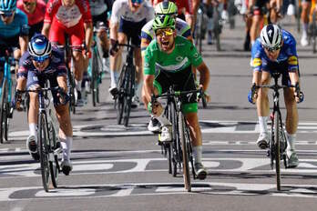 Pello Bilbao y Ion Izagirre, en el sprint de la etapa que se disputaron en la Itzulia en Hondarribia, eran dos de los vascos preseleccionados para los Juegos. (Jon URBE/FOKU)