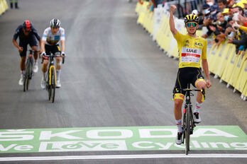 Tadej Pogacar cumple su objetivo de ganar con el maillot amarillo en el duro col du Portet