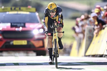 Wout van Aert ha sido el más furete de principio a fin en la crono. (Anne-Christine POUJOULAT/AFP)