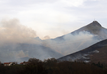 L'épaisse fumée aux abords de La Rhune était visible de loin ce samedi 20 février. © Christophe Lebrun