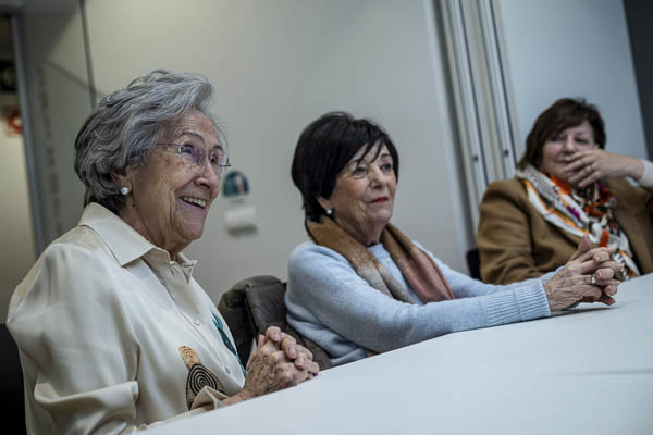 Berez, hiru baino gehiago ziren. «Jada Maite, Koro, Maria Jesus… ezin dira gure artean egon», esan dute elkartu izanaren pozari hesia jarriz. Baina bataren zein bestearen seme-alaben edota biloben berri galdetzearekin bat, berehala berrartu dute hitz-jarioa.