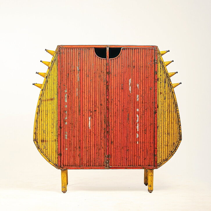 Conocido como una de las voces más destacadas en el diseño africano contemporáneo, el artista y diseñador multidisciplinario Hamed Ouattara combina los espíritus de lo artesanal e industrial para crear un resultado culturalmente significativo y visualmente llamativo, cuestionando la disponibilidad y reimaginando las posibilidades del material y el diseño. Su última exposición “Bolibana” celebra las técnicas tradicionales y la artesanía, con la pátina acumulada de cada obra contando una historia de su pasado. Actualmente en exhibición en la galería Friedman Benda, en el idioma Bamana de África Occidental, “Bolibana” se refiere al final inusual de un viaje o una transformación. Ouattara es conocido por reciclar los materiales industriales -Bolibana, como sus característicos tambores de aceite- en piezas coloristas que se centran en la reutilización de los residuos de un Burkina Faso cada vez más industrializado. Dentro de sus piezas, Ouattara también busca volver a comprometerse con el oficio y el conocimiento que se ha perdido debido a estos mismos cambios. Se basa en la arquitectura sado-saheliana de ciudades míticas, como Tombuctú, Djenne y Bobo Dioulasso, marcando una exploración hacia un nuevo territorio.