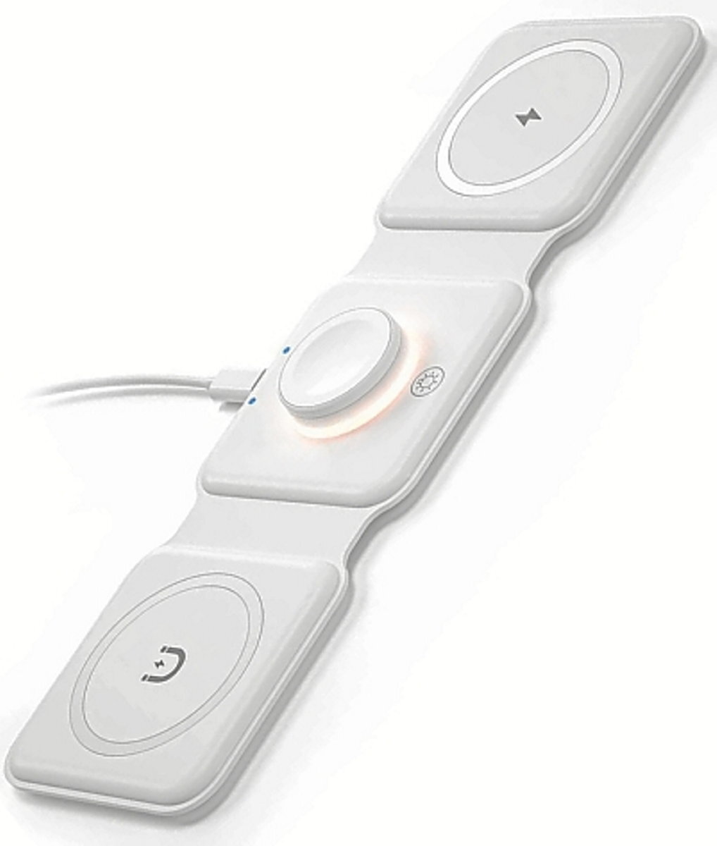 Fabricado en silicona, este cargador inalámbrico plegable con potencia de hasta 15 W puede cargar hasta tres dispositivos e incluye una pequeña luz regulable, convirtiéndolo en un accesorio muy útil para viajar. Es compatible con dispositivos con sistema Qi o MagSafe de Apple.