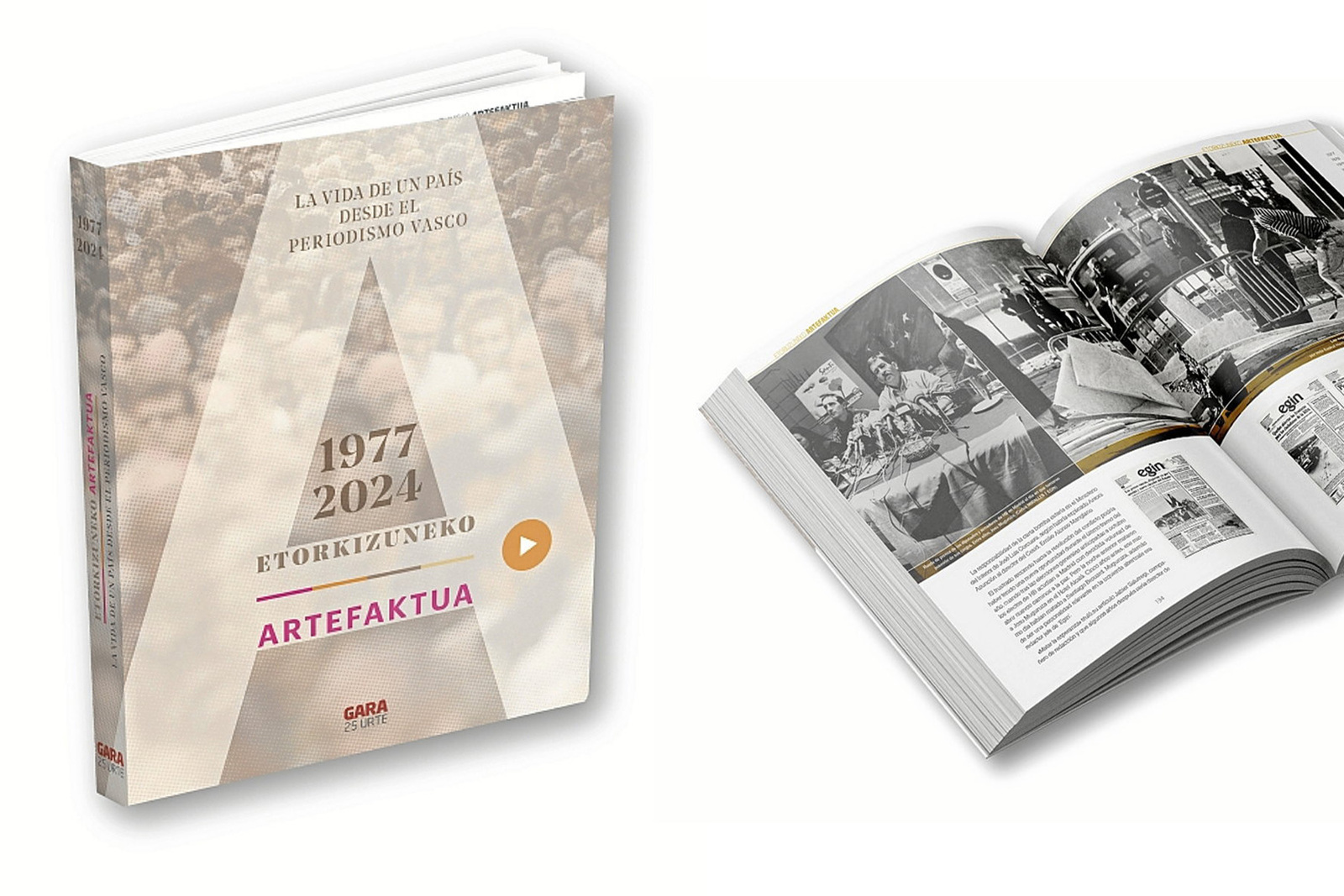 Medio siglo de la vida de Euskal Herria condensado en un ejercicio periodístico insólito: “Etorkizuneko Artefaktua”, una tarea colosal que complementa diariamente la oferta informativa de NAIZ y de GARA a través de las crónicas, imágenes y portadas de los acontecimientos y fenómenos que han marcado el devenir de Euskal Herria. Y ahora llega en formato libro, que estará disponible en el stand de GARA de la Feria de Durango.