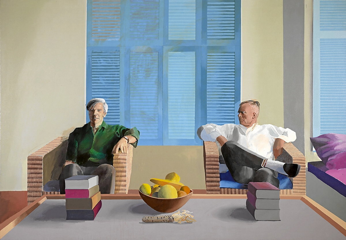 «David Hockney, Christopher Isherwood and Don Bachardy», 1968. Acrílico sobre lienzo, (212,1 x 303,5 cm). (© David Hockney - © Richard Schmidt - © Fabrice Gibert | Fundación Louis Vuitton)