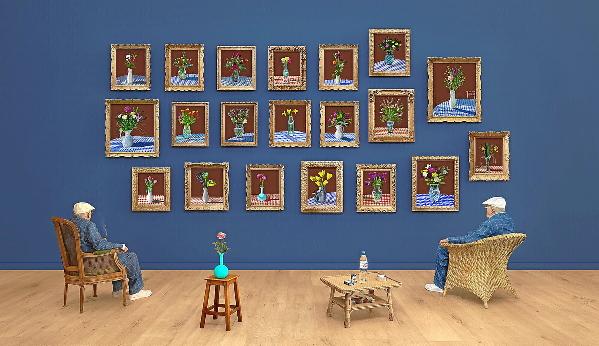 Pese a su avanzada edad -87 años, Hockney cumplirá 88 el 9 de julio- y su delicado estado de salud, aunque siga fumando y discrepando de la “liga anti-tabaco”, desde la Fundación Louis Vuitton mantienen que el autor ha estado muy involucrado en el montaje: «Ha participado personalmente en cada aspecto de la exposición y, junto con su socio y director de estudio, Jean-Pierre Gonçalves de Lima, ha optado por centrarse especialmente en los últimos 25 años, incluyendo también sus icónicas primeras obras, ofreciendo a los visitantes una perspectiva única de su universo creativo, que abarca siete décadas. El artista ha participado en la composición de cada secuencia y la disposición de cada espacio, en constante diálogo con su asistente, Jonathan Wilkinson».