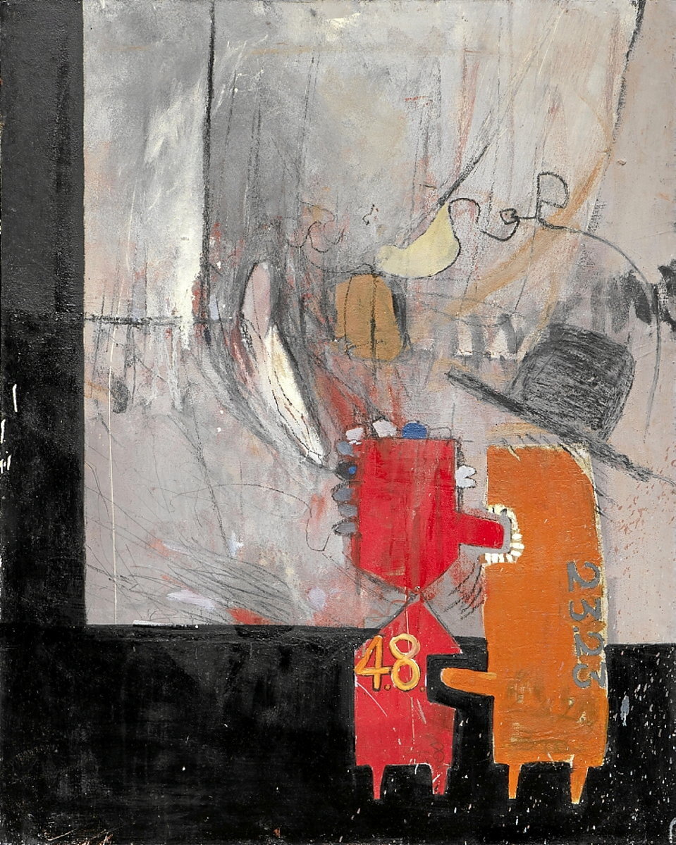 «David Hockney, Adhesiveness, 1960». Óleo sobre cartón (127 x 101,6 cm) que está en el Museo de Arte Moderno de Fort Worth. (© David Hockney © Richard Schmidt | Fundación Louis Vuitton)