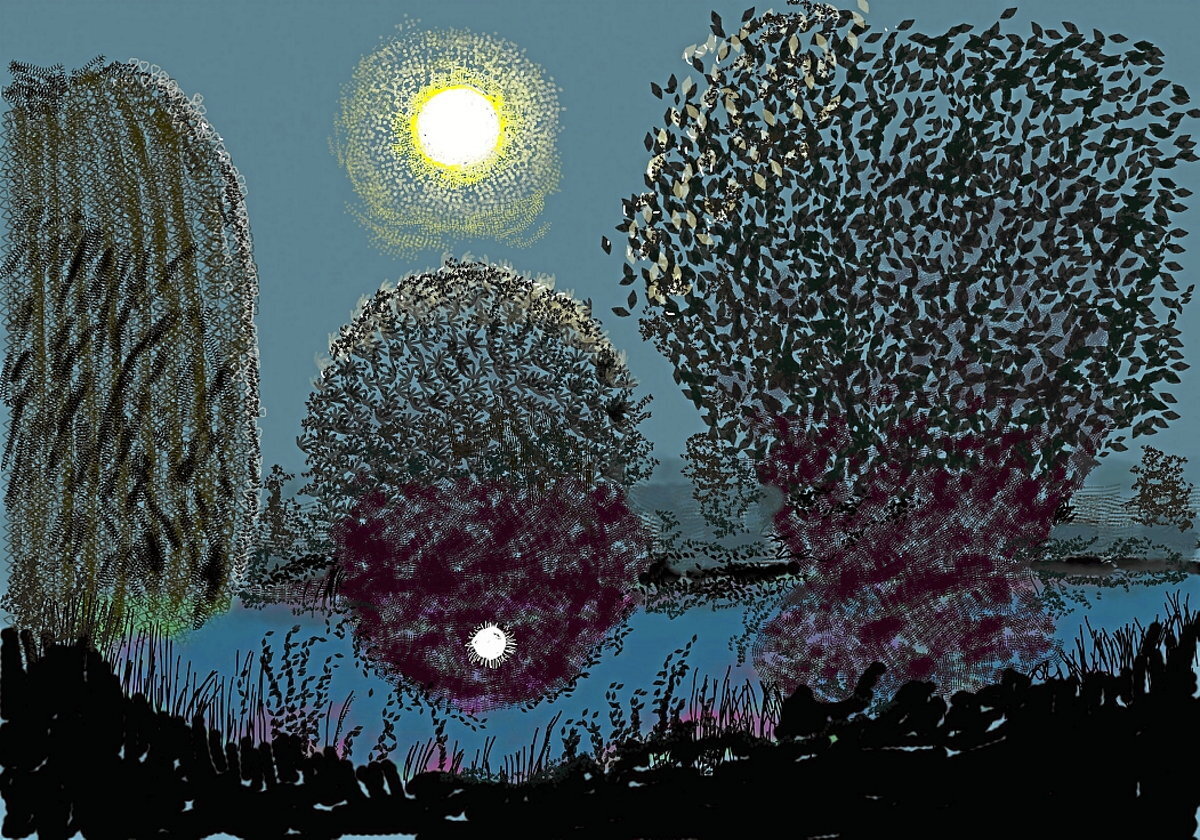 «David Hockney 10th September 2020», pintura iPad impresa en papel, montada sobre cinco paneles de aluminio (364,1 x 521,4 cm). (© David Hockney | Fundación Louis Vuitton)