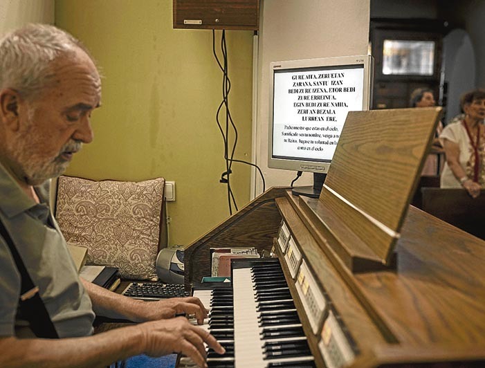 «Nos gustaría ampliar las actividades pero no queremos competir con la Euskal Etxea», responde ante la duda de por qué no se imparten cursos de euskara allí. Recuerda también que en los tiempos de la dictadura franquista se mantuvo la misa en euskara e incluso se realizaban varias misas semanales. «Se pudo mantener, no se hacía mucho ruido tampoco. Tampoco es algo que se proclamara. Pero nunca se prohibió. Pasaba desapercibido, supongo», asevera.