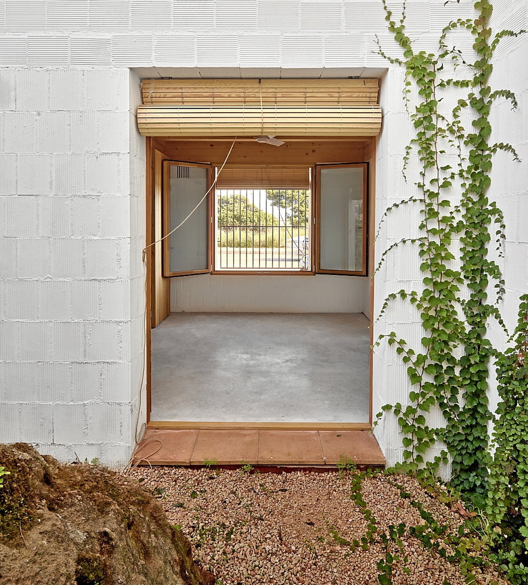 La ventilación cruzada, los patios drenantes, el uso de vegetación autóctona y los lucernarios que capturan y disipan el calor se combinan con una envolvente revestida con enlucido de cal, cuya capacidad reflectante y transpirabilidad garantizan el confort. Además, una galería técnica subterránea actúa como intercambiador térmico y el agua de lluvia recogida se acumula en un depósito para su reutilización.